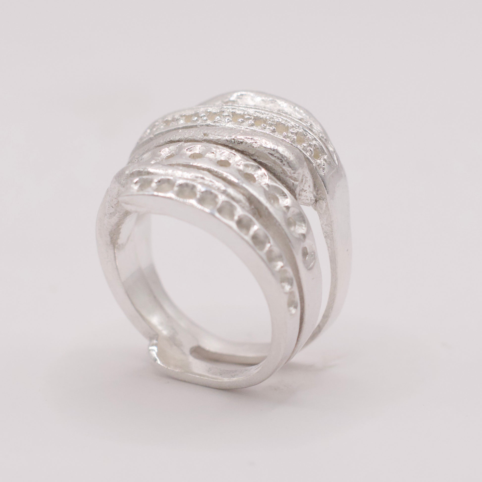 This piece began with a surprise: when I bought a used wax injector on eBay, the seller threw in a bag of flawed and leftover wax rings. Most of them not my style. I took it as a little challenge: Could I transform these scraps into something that feels like my design? Using soft wax as a kind of glue, I mended and stacked three of those rings together, reshaping them into a completely new form. A small experiment in giving discarded pieces a second life.